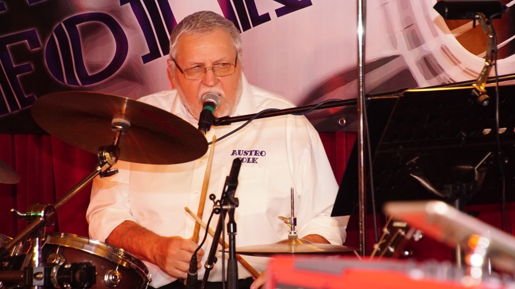 Er singt, greift zur Akustik- oder E-Gitarrn und schaut als ausgebildeter Tontechniker drauf, dass des Ganze ned nur laut, sondern auch leiwand klingt. 🙂